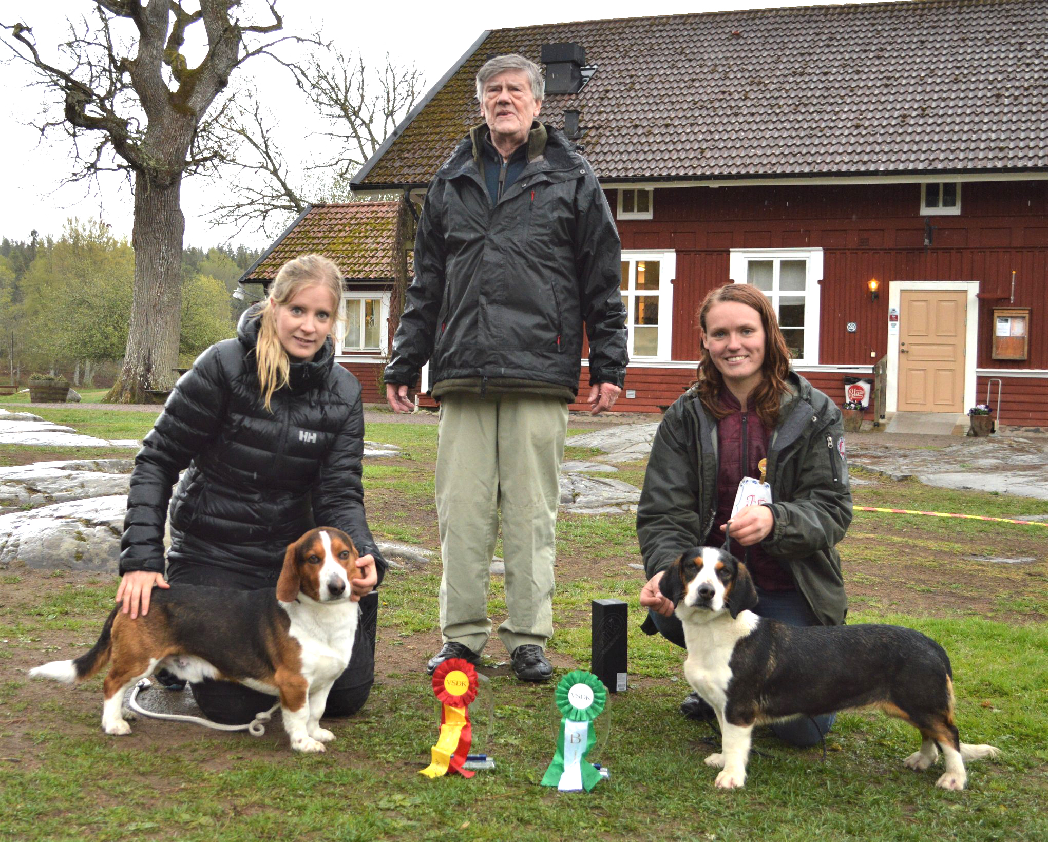 FALSTERGÅRDENS ALEX SE35450/2024 e J SEUCH SEJCH Vistabergens Calle SE52778/2020 u J Falstergårdens Ystra Dolly SE35453/2018 Äg: Kurt Andersson, Uddevalla Mkh: 35 cm. Färg: Trefärgad. En hane som kunde vara mer långsträckt. Kunde vara mer utfylld i nosen, korrekt bett. Välformade välpigmenterade ögon, välplacerade öron med korrekt rundning. Utm förbröst, aning raktställd skuldra. Stark plan rygg, utm välvining i bröstkorg. Aning uppdragen buklinje. Välmusklade lår, utm benstomme. Utm hårlag. Trevligt temperament. Rör sig prydligt från alla håll. Excellent, 3 kk